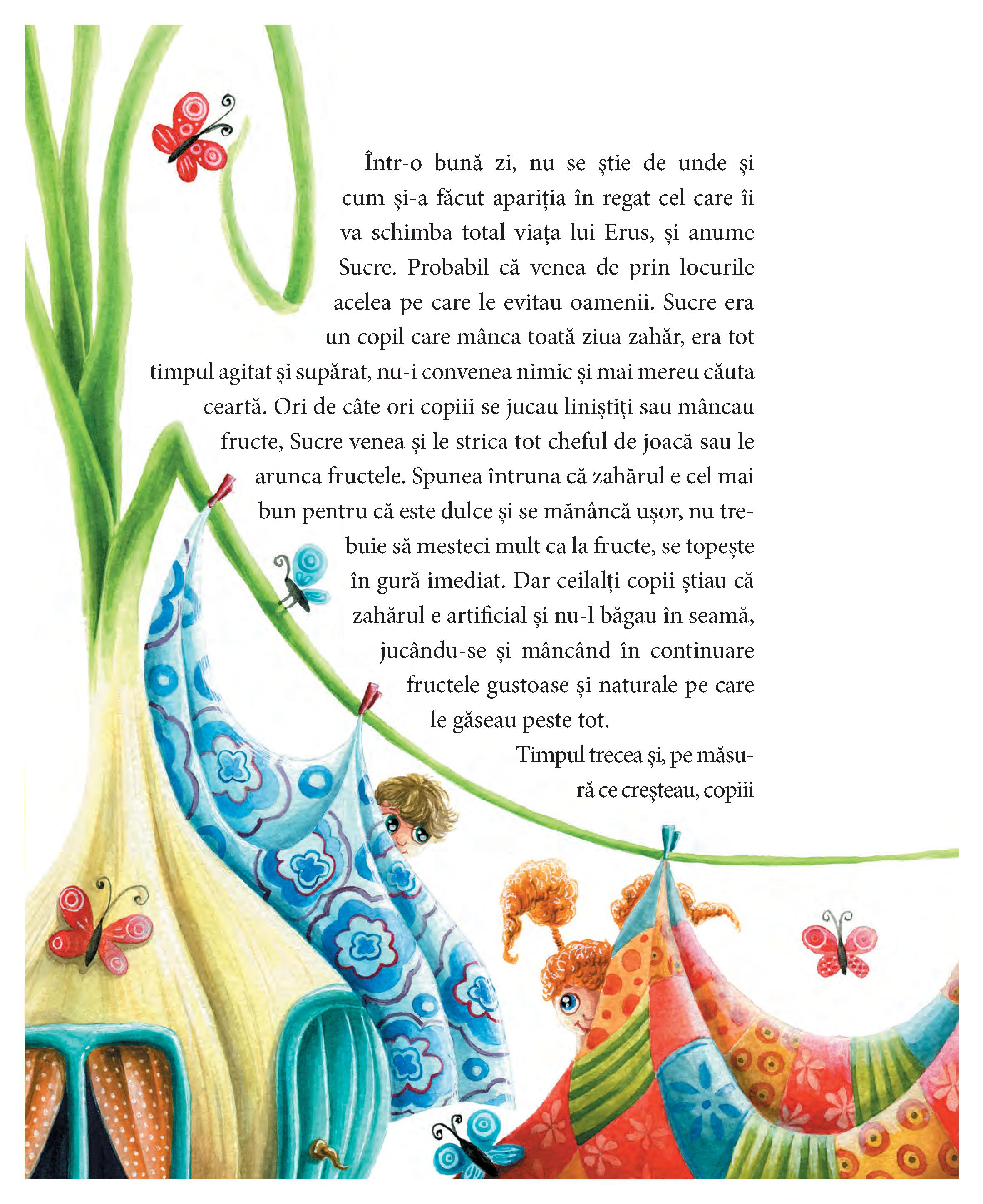 Cartile sunt frumos ilustrate, placute, dar textul e pe ici colo usor fortat, se simte o nota comerciala. Seria de carti calatoriile lui erus, un baiat cu obiceiuri nu prea sanatoase si cu atitudini nepotrivite este supus mai multor incercari si provocari iar el invata lucruri minunate, devenind mai bun, mai intelept si mai … Indiferent ca ne referim la carti de colorat, basme, proverbe ori ghicitori sau la atlase, enciclopedii si dictionare, colectia dedicata copiiilor contribuie la formarea viitoarei noastre generatii. Melodiile ii ajuta sa retina mai usor, de exemplu, ca fructele ne fac sanatosi, iar intamplarile le demonstreaza ca rabdarea, generozitatea, iubirea si recunostinta iti sunt de folos in viata. Oferta bogata in carti pentru copii este structurata in functie de varsta si pe mai multe domenii de interes:.. Însoțită și de o ilustrație de excepție, …
